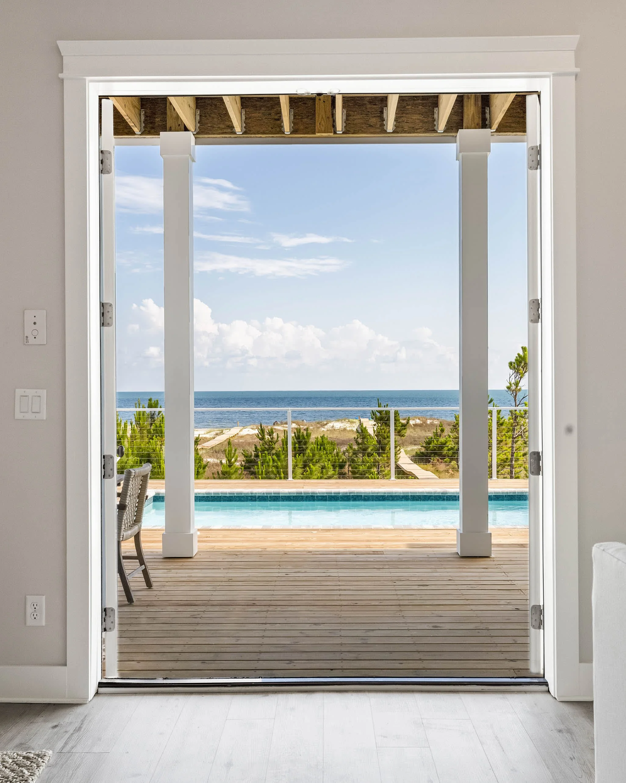 Experience a 3,300 sq. ft. designer retreat in Villa del Sol, featuring a private elevated pool, elevator, and direct boardwalk access to the sugar-white sands.